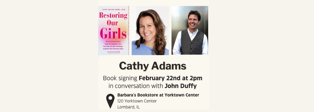 On Saturday, February 22nd Dr. John Duffy and I will be discussing Restoring Our Girls & Rescuing Our Sons at Barbara’s Bookstore in Yorktown Mall – we love a good Q&A, so please click below to register and join us!